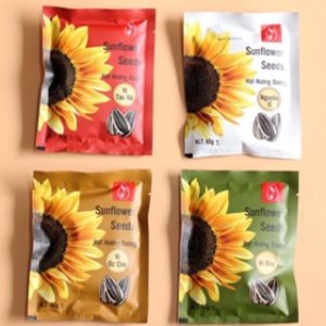 Chất liệu bao bì: Trên thị trường có rất nhiều chất liệu bao bì để làm gói hạt hướng dương, tuy nhiên để đảm bảo việc hạt hướng dương được kín và hư hỏng, khách hàng hay chọn vật liệu có màng nhôm ở giữa để đảm bảo.